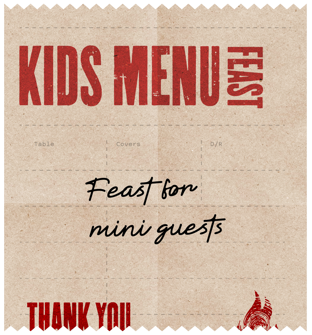 We’ve got the perfect option for the younger ones at your event, with a 2 course menu with the same fire cooked quality, just a little more stripped back and familiar to avoid those “I’m not eating THAT” moment...