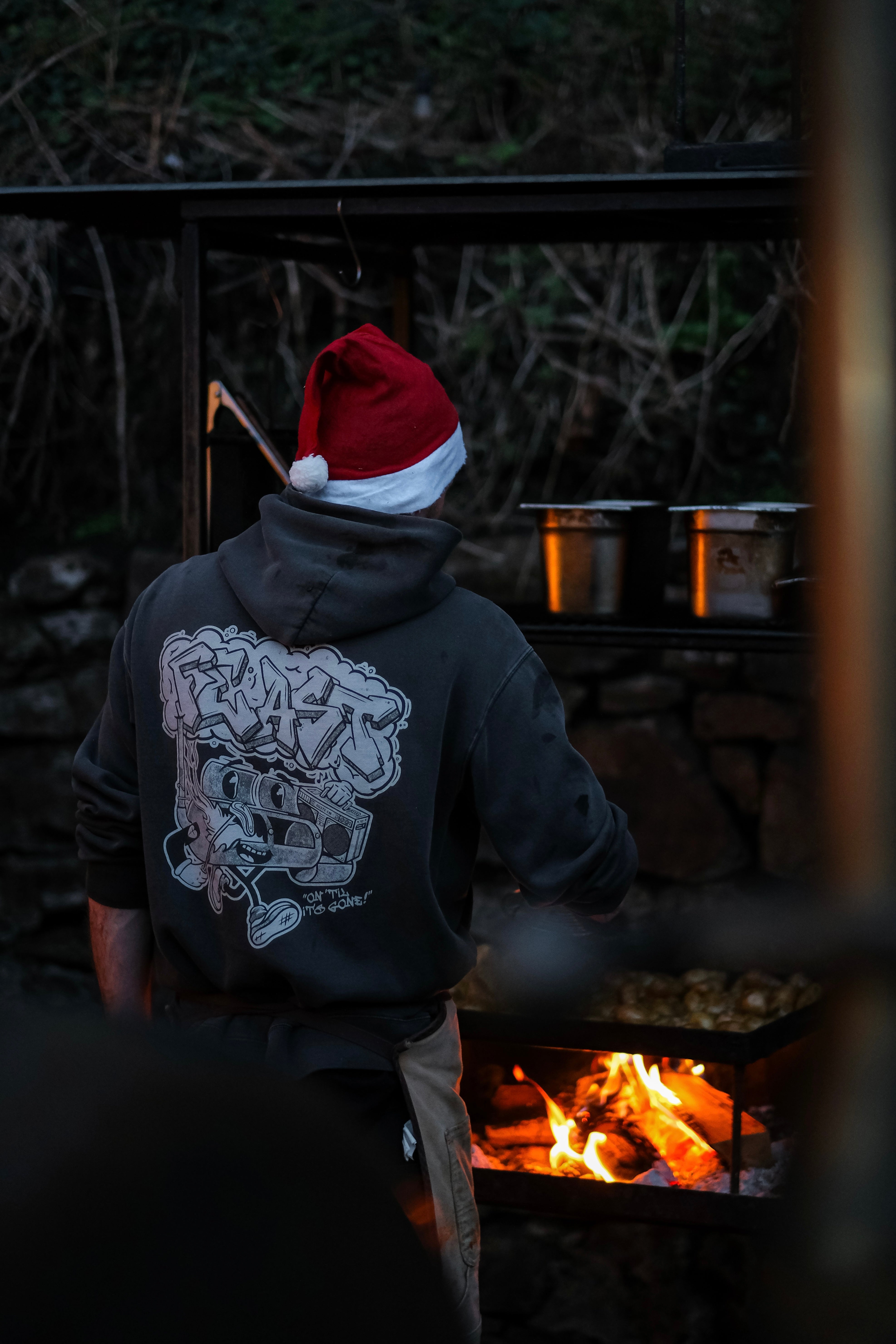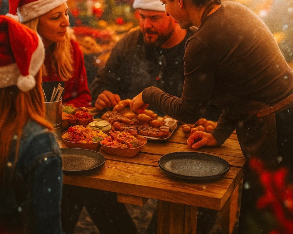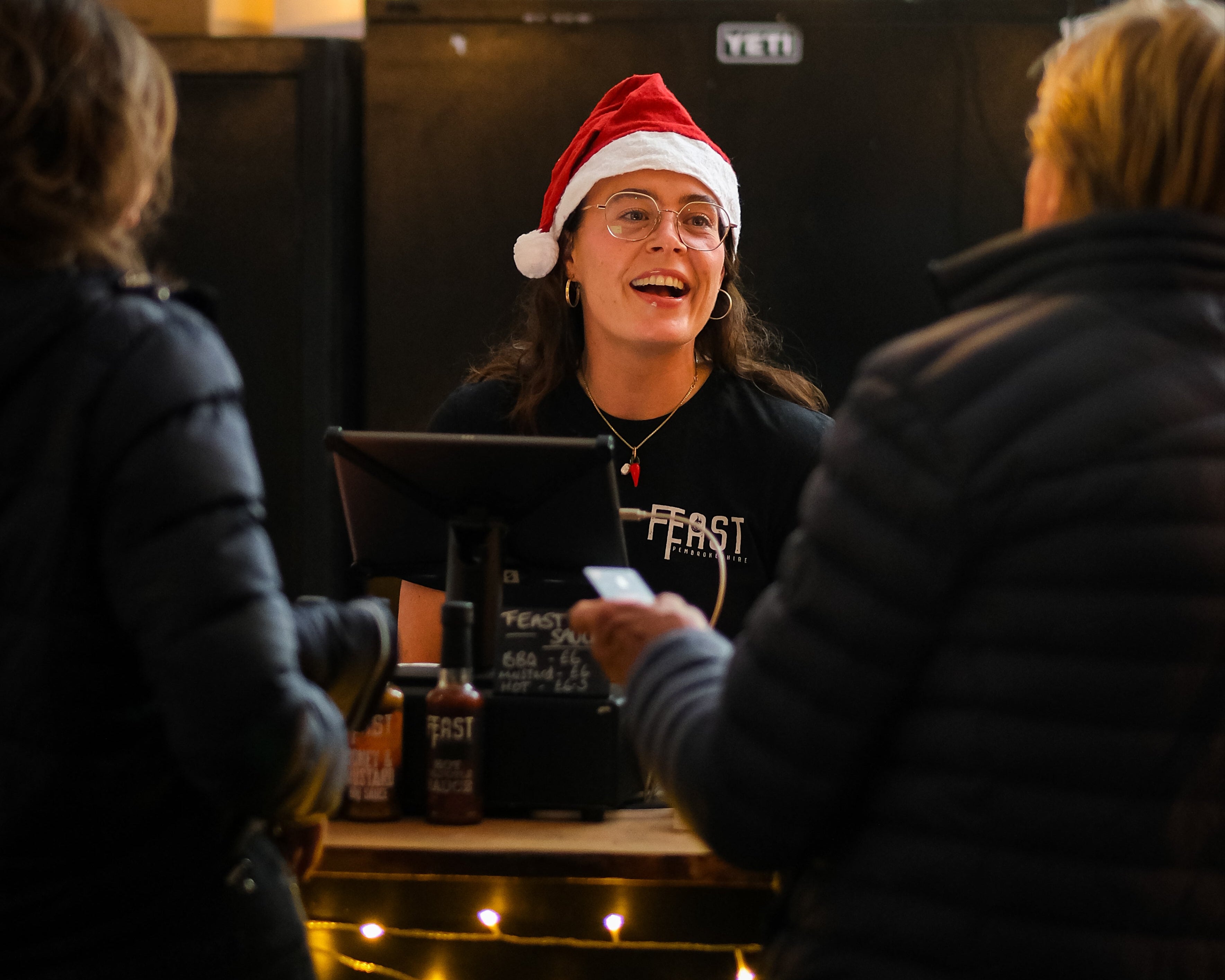 Enjoy a welcome mulled wine or cider on arrival, followed by a 3 course fire cooked banquet, served sharing style to the table, Christmas tunes, crackers & toasting a festive tipple around the fire.