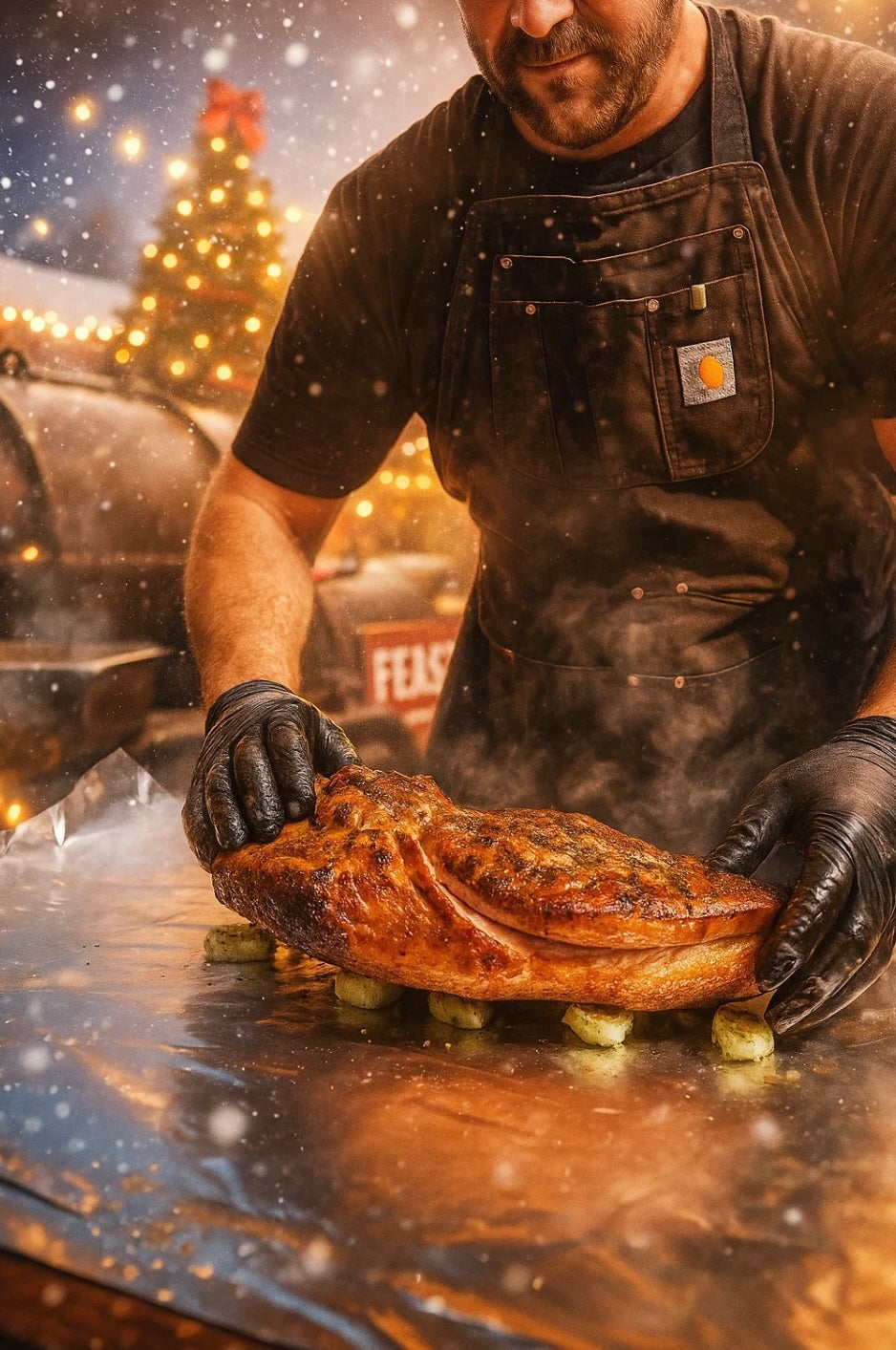 We prepare all menu items in our smokers & BBQs, then chill them so they’re ready for you to simply reheat and enjoy at home over the festive period. Full reheating instructions are included with every order.