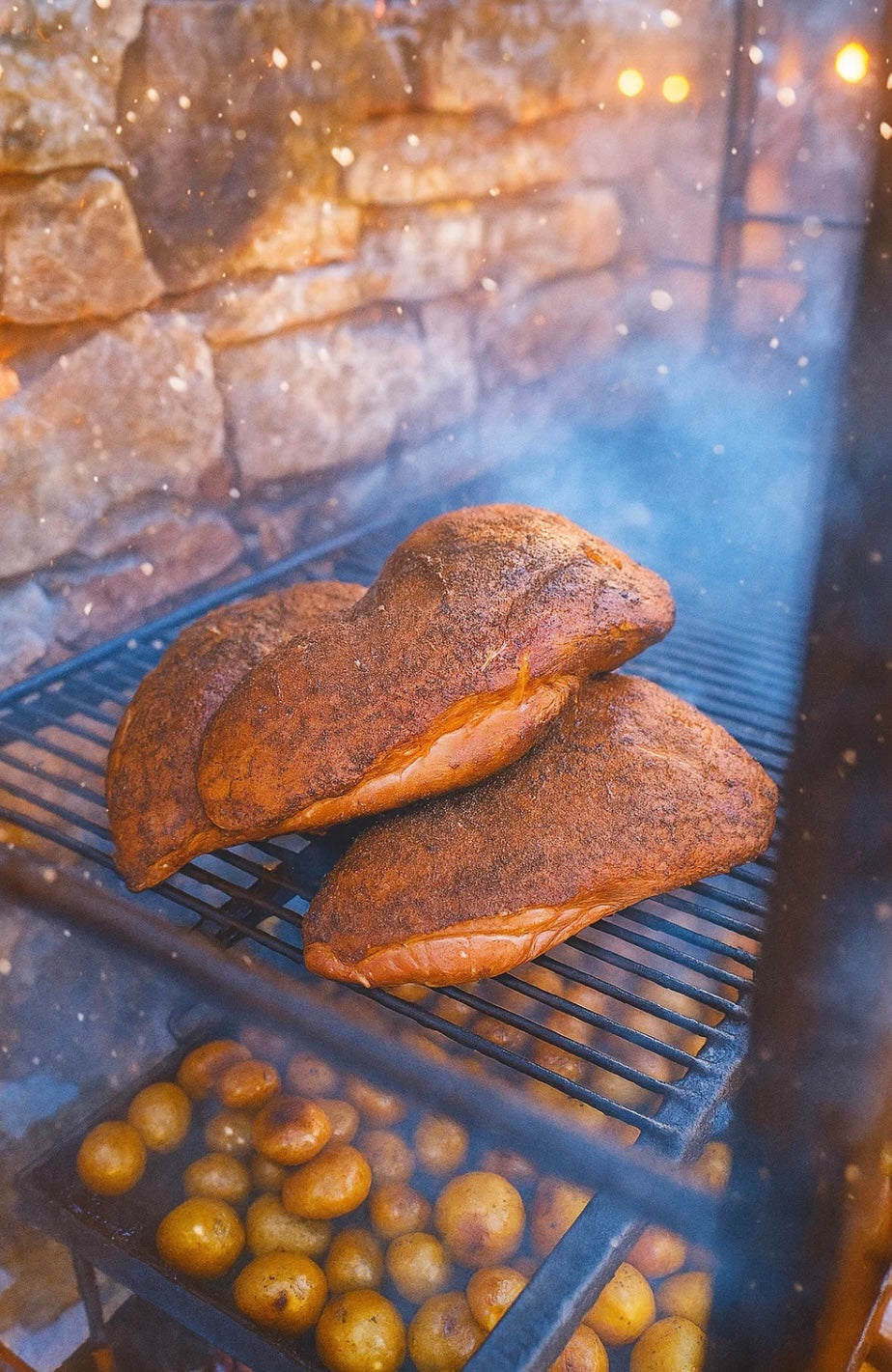 - Fire roasted potatoes w/ smoked garlic & rosemary
